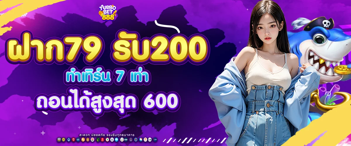 ฝาก 79 → รับเพิ่ม 121 = รวม 200 / ทำเทิร์น 7 เท่า / ถอนได้สูงสุด 600